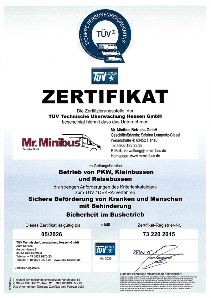 Mr. Minibus Betriebs GmbH · Weserstraße 04 · 63452 Hanau